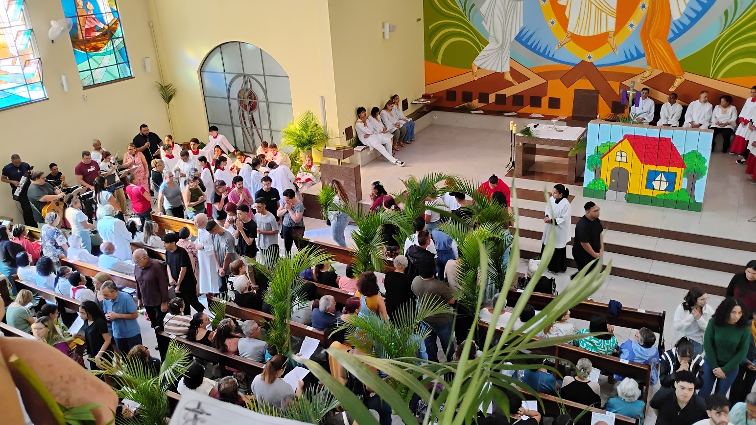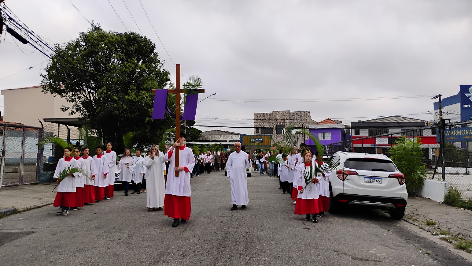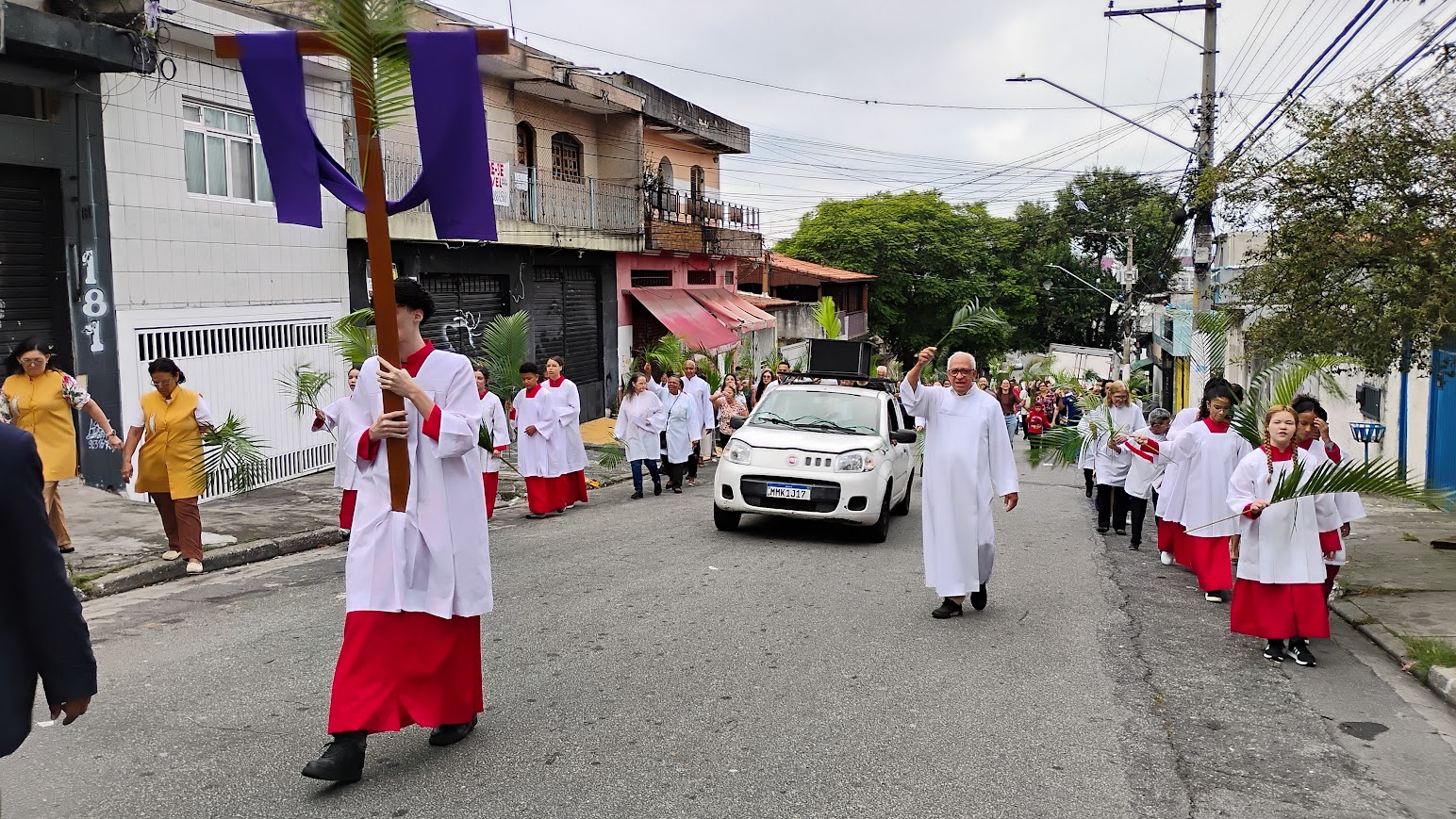 É maravilhoso ver a participação dos paroquianos, especialmente das crianças, que enchem a celebração de alegria e esperança. A procissão pelas ruas do bairro é um momento de fé e comunhão, fortalecendo os laços da comunidade e preparando nossos corações para a Semana Santa.