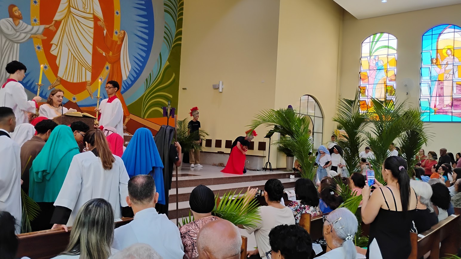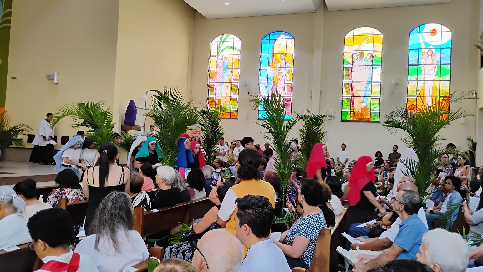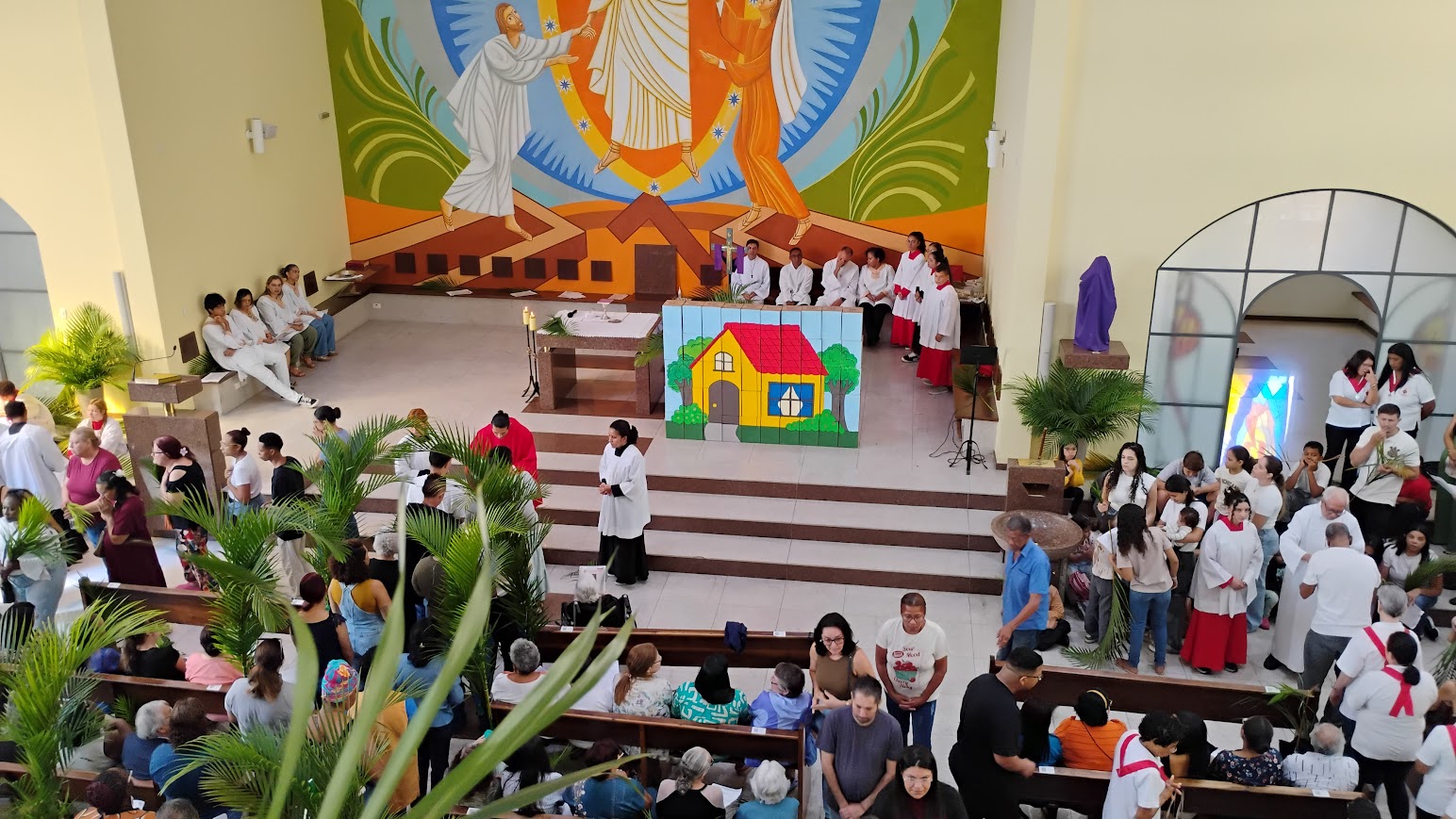É maravilhoso ver a participação dos paroquianos, especialmente das crianças, que enchem a celebração de alegria e esperança. A procissão pelas ruas do bairro é um momento de fé e comunhão, fortalecendo os laços da comunidade e preparando nossos corações para a Semana Santa.