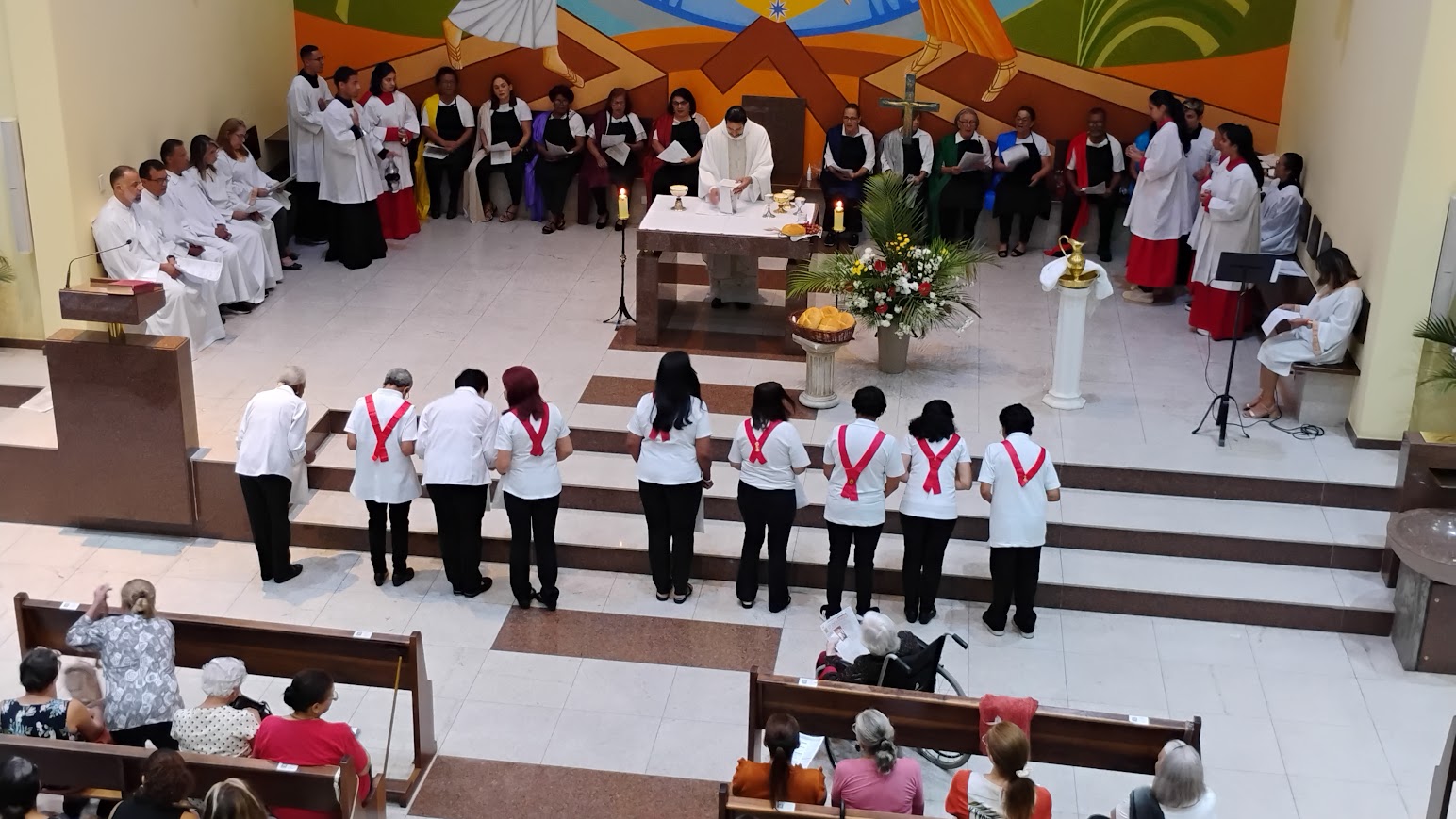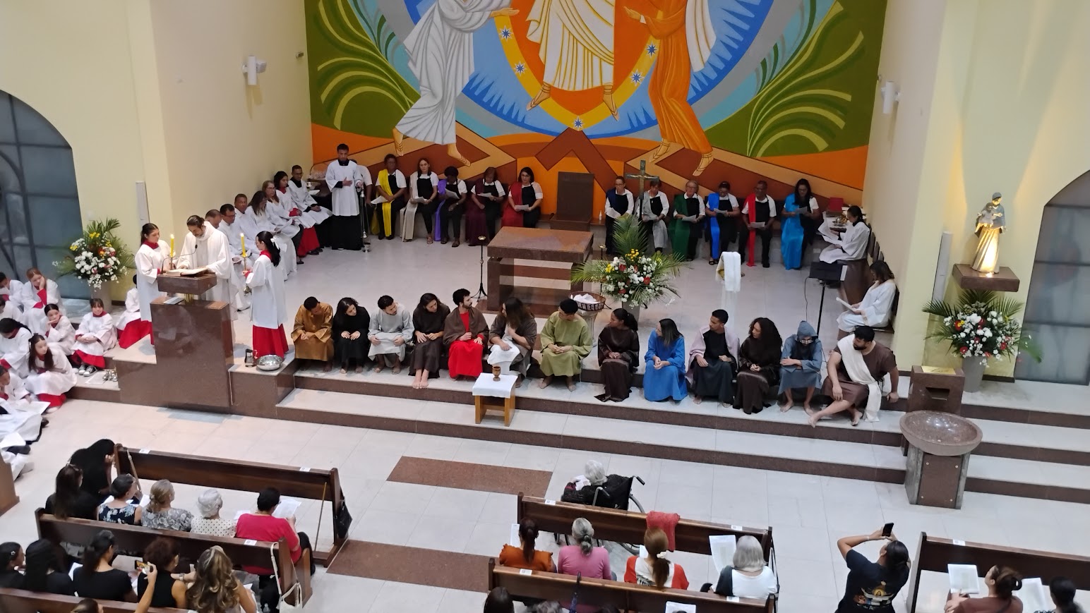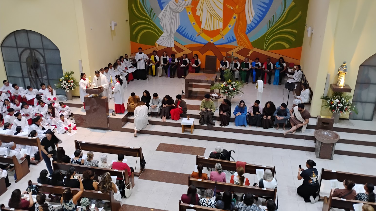 A missa do Lava-Pés, tradição do catolicismo que simboliza o exemplo de humildade deixado por Jesus Cristo. Antes da ceia, Jesus lavou os pés de seus discípulos, demonstrando humildade e serviço, ensinando-os a amarem e servirem uns aos outros. Este ato é frequentemente recriado em cerimônias litúrgicas na Quinta-feira Santa.